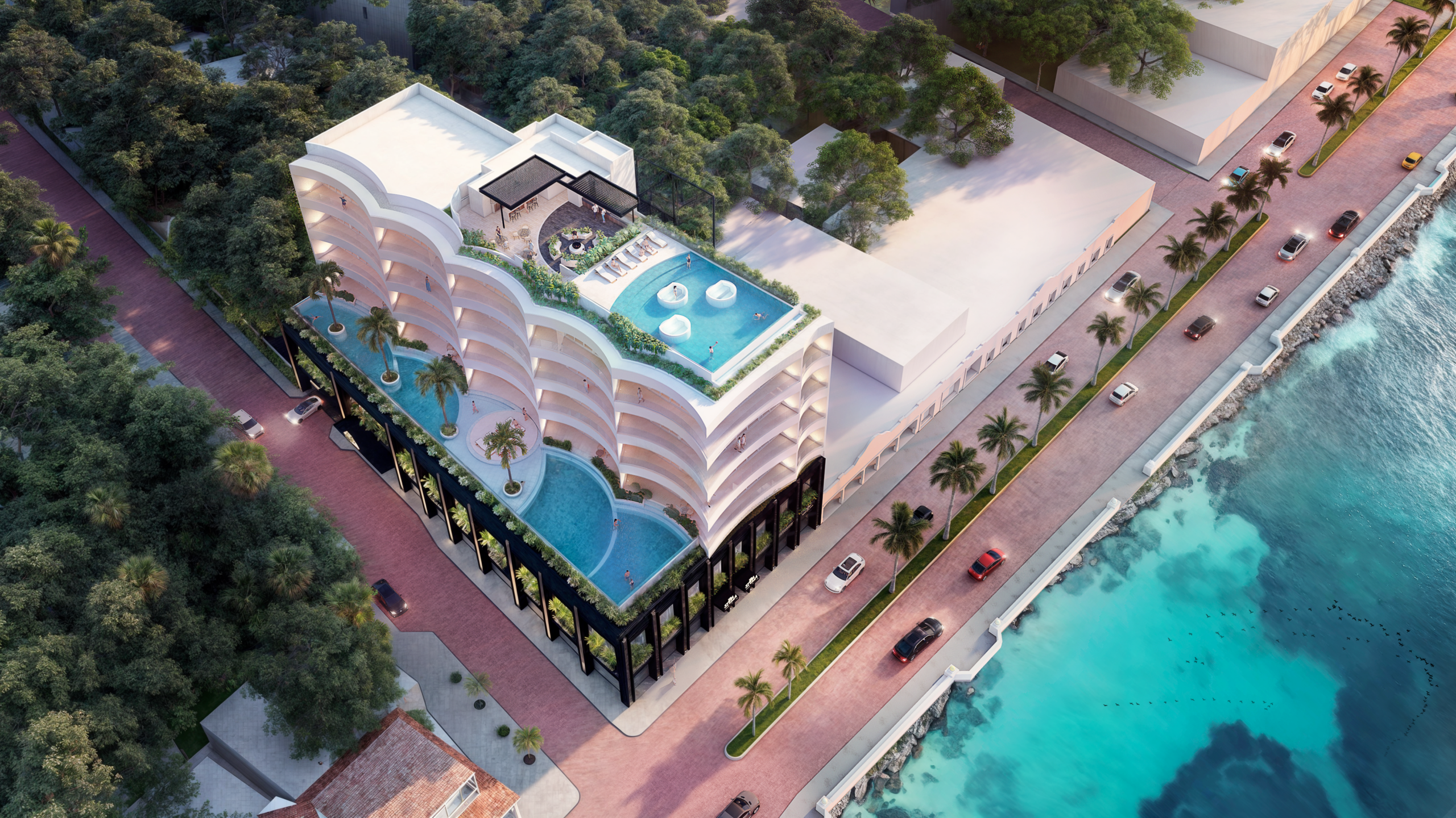 Es una oportunidad residencial "radiante" y "exclusiva" frente al mar Caribe en la Isla Cozumel. El proyecto ofrece una mezcla ideal de amenidades y departamentos de alto diseño, siendo descrito como una joya arquitectónica.